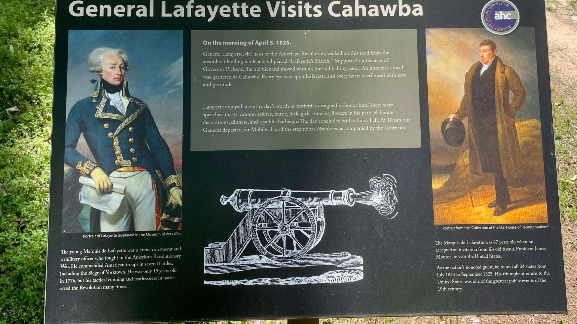 On April 5, 1825, General Lafayette visited Cahawba, Alabama—the state’s first capital—as part of his triumphant Farewell Tour of the United States. This visit was one of ten stops he made in Alabama during his journey to honor the 50th anniversary of American independence. Lafayette arrived by steamboat, enjoyed a lunch across the street at White’s Hotel, visited the public in the large open Capitol Reserve area, the local Masons, and then heads back to his boat at the end of the day.