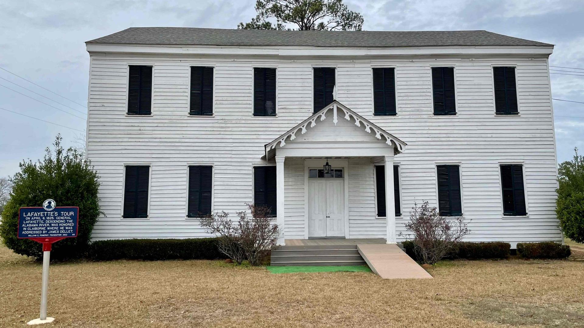 Lafayette arrived in Claiborne, near Perdue Hill, on April 6, 1825. He was received at the Masonic Lodge in Perdue Hill, a significant local landmark that still stands today. The reception committee was chaired by James Dellett, the first speaker of the Alabama House of Representatives, who delivered an eloquent welcome speech. Lafayette was so moved by the warmth of the Claiborne residents that he extended his stay for several hours, enjoying heartfelt demonstrations of friendship and admiration. Lafayette also reportedly dedicated the Perdue Hill Masonic Lodge, which was built in 1823 and is considered to be one of the state’s oldest standing buildings.