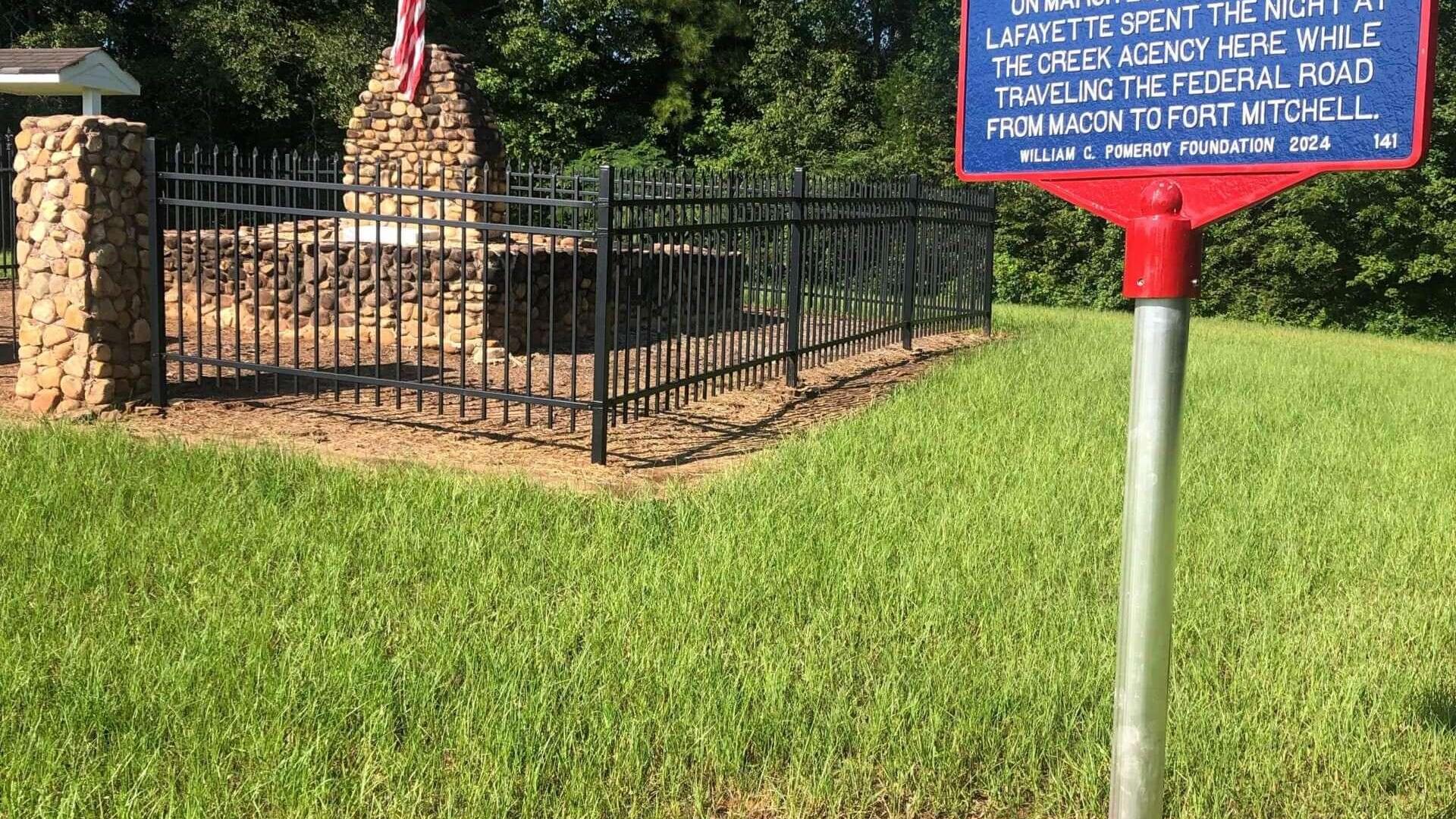 Roberta did not yet exist in 1825 (it was founded in the 1880s), but Lafayette’s Federal Road route passed directly through the area that would later become the town. Lafayette spent the night of March 29, 1825, at the U.S. Indian Agency on the Flint River—today located in Crawford County, just south of modern Roberta, Georgia. The Agency was the headquarters of Benjamin Hawkins, long‑serving U.S. Indian Agent to the Creek Nation and a member of George Washington's staff during the war. Hawkins died in 1816 and is buried on the grounds. Lafayette had known Hawkins personally during the early Republic, so the stop carried emotional and symbolic weight.