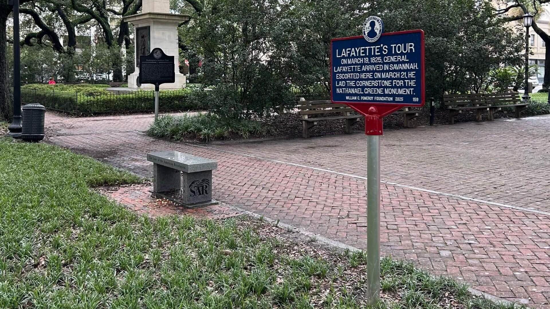 Maj. Gen. Nathanael Greene, of Rhode Island, died near Savannah on June 19, 1786, at Mulberry Grove Plantation, which had been granted to him in appreciation of his services in the Revolution. The memorial’s first cornerstone was laid on March 21, 1825, by Marquis de Lafayette during his visit to Savannah, 50 years after the end of the Revolution. That day, Lafayette, along with a group of freemasons, soldiers, citizens, and clergymen, marched to the square where a ceremony was held, and Lafayette gave a memorable speech. The city proceeded with the construction and installation of the monument, finally completing it in 1830.