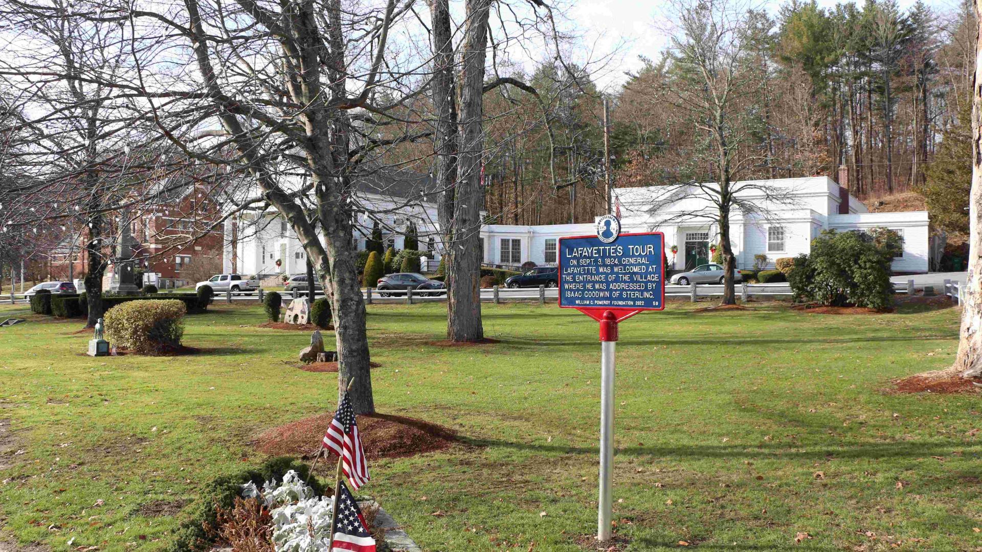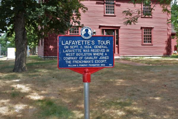 According to the September 8, 1825 edition of the Massachusetts Spy, Lafayette was received with every demonstration of joy. His approach to the village was hailed by 13 discharges of Artillery and the ringing of the bell. He was then escorted by two beautiful companions of Light Infantry under the command of Capt. Dana of Sterling, and Capt. Meriam of Princeton to an arch decorated by greenery at the entrance to the village, which read “Welcome Lafayette, America’s Adopted Son, Brother and Friend of Washington. Our land in trouble found a friend in thee, We’ll not forget thee in prosperity."