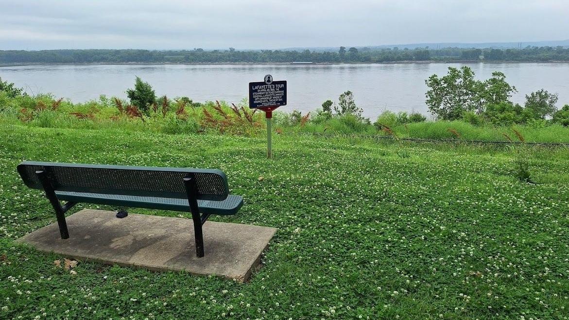 Lafayette traveled aboard the steamboat Natchez, accompanied by a delegation from Louisiana. A messenger was dispatched to notify Governor William Clark that Lafayette would arrive in St. Louis the next morning. On April 28, 1825, General Lafayette arrived by steamboat around 9:00 A.M. near Carondelet, Missouri, just south of St. Louis, where he spent the night before his grand reception at the Mansion House Hotel in the city the following day. Lafayette rode in a four-horse carriage through the city, accompanied by a military escort and a parade of dignitaries. While in St. Louis, Lafayette toured Governor Clark's museum of "indian curiosities," a collection of artifacts from his westward expedition to the Pacific Ocean.