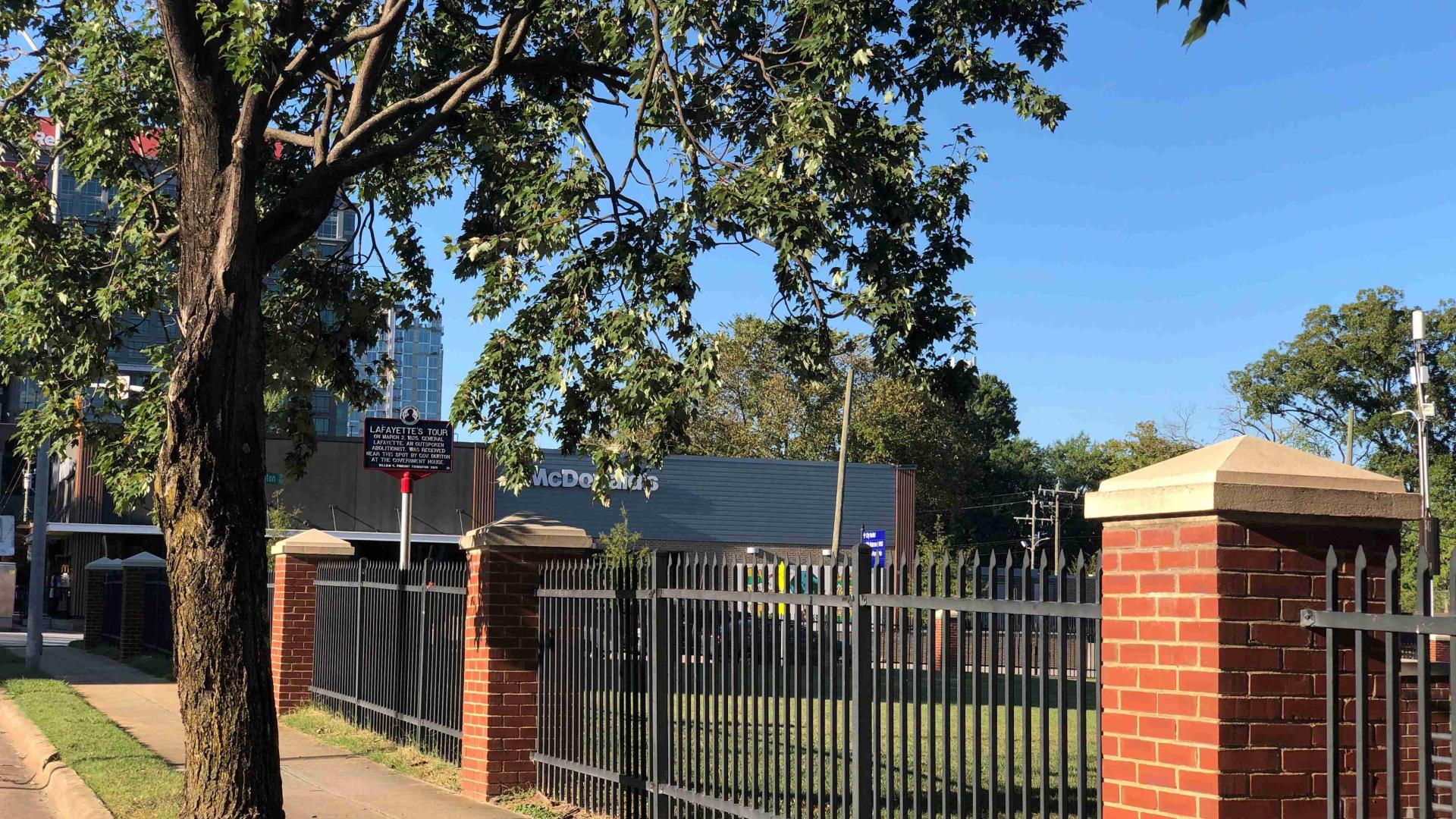 Lafayette visited Raleigh, North Carolina, on March 2, 1825, where he was met at Crabtree Creek Bridge by the North Carolina militia with cannon fire and a formal escort into the city. Governor Hutchins Burton welcomed Lafayette at the Governor’s Mansion. Afterwards, he visited the North Carolina State Capitol, where he admired Antonio Canova’s marble statue of his good friend and comrade, George Washington, dressed as a Roman general. He pronounced it a good likeness. The statue was commissioned by the state of North Carolina in 1815 and completed by 1820. This work was the only one Canova created for the United States.