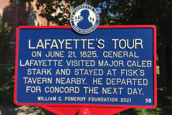 On June 21, 1825, General Lafayette departed Boston, Massachusetts, to begin his tour of New England. On his way to Concord, New Hampshire, Lafayette stopped in the town of Pembroke. The Portsmouth Journal of Literature & Politics, dated July 2, 1825, records the event: He arrived in Pembroke about eleven in the evening, calling at the residence of Maj. Stark, the name of whose father will ever shine, bright on the annals of New Hampshire, and who was himself, although young, a participator in the perils of the revolution. He lodged that night at Fisk’s tavern. Major Caleb Start and his father were veterans of the 1st New Hampshire Regiment, Continental line. Lafayette departed for Concord the next day.