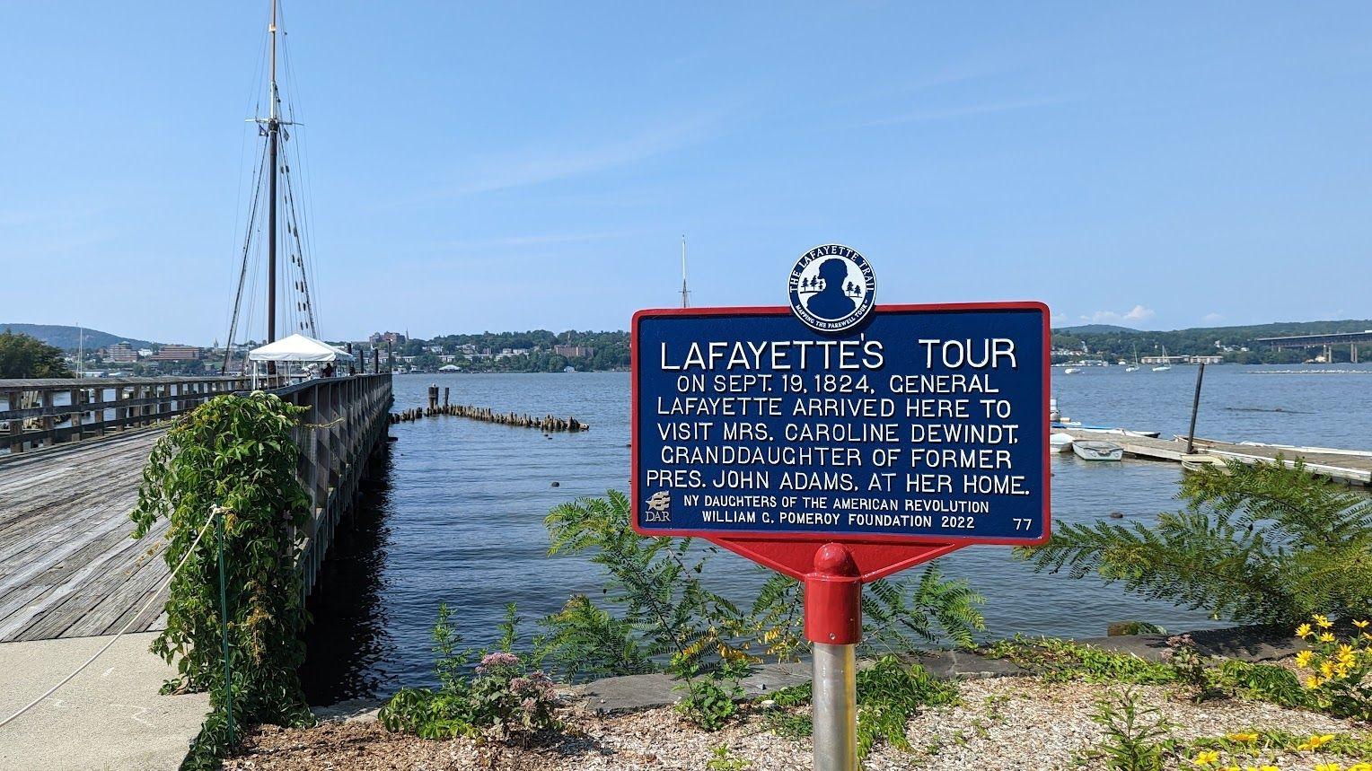 On September 19, 1824, General Lafayette visited Fishkill Landing—today’s Beacon, New York—where he was received at the home of Caroline Amelia Smith DeWindt, granddaughter of President John Adams. The Marquis de Lafayette, John Adams, and Captain William Smith ( Caroline’s father) were allies during the war. Lafayette arrived aboard the steamboat James Kent, and was welcomed into the DeWindt home, Cedar Grove, described by the Evening Post as “brilliantly lighted and decorated with portraits of Col. Smith and lady, and a bust of President Adams.”