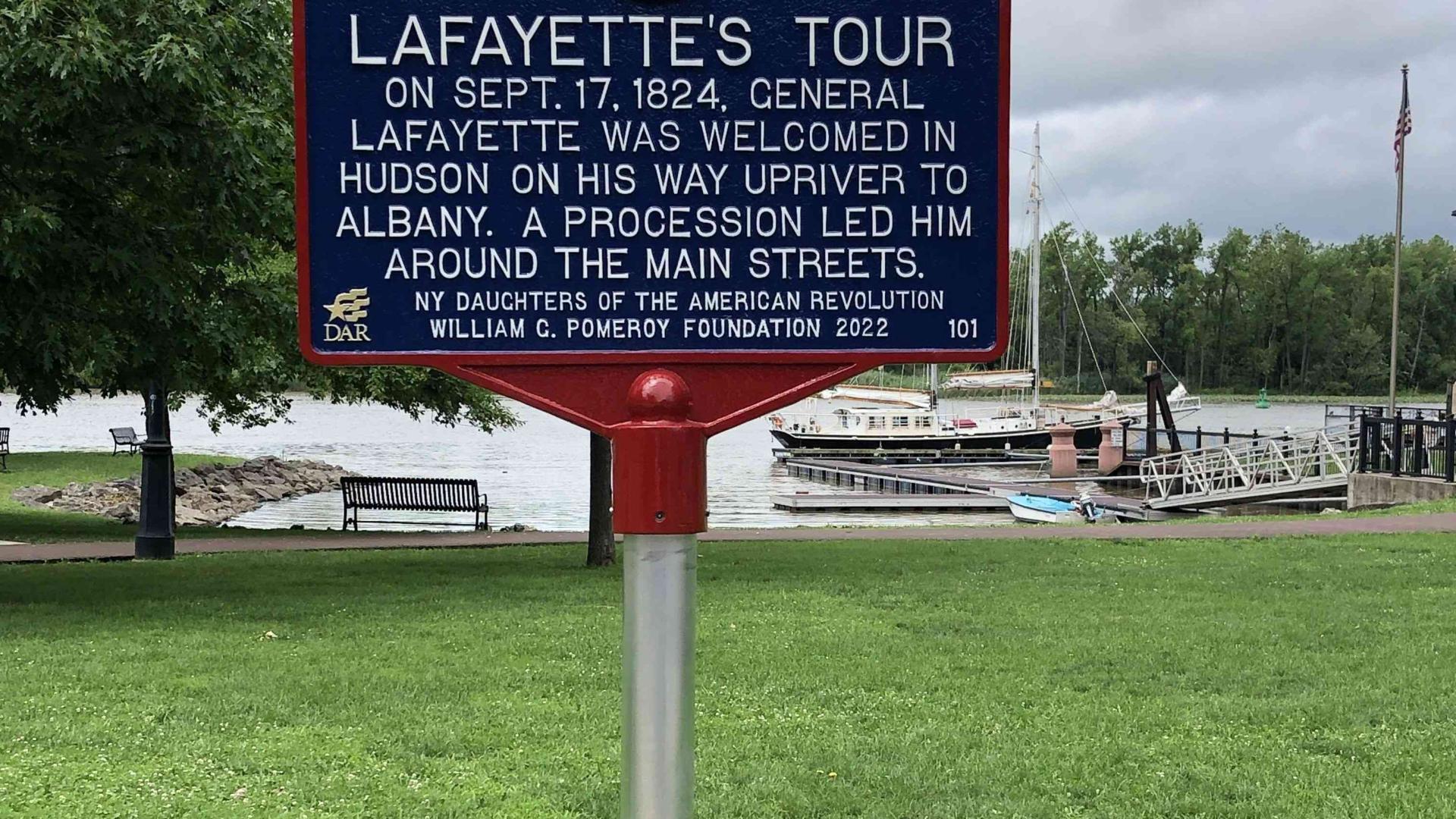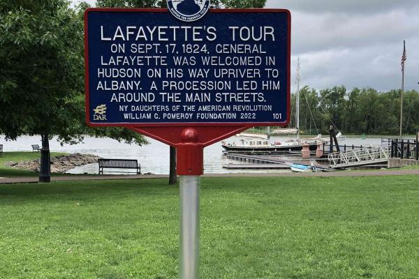 Lafayette arrived in Hudson on September 17, 1824, traveling by steamboat James Kent along the Hudson River. He was welcomed by the mayor, the common council, and the “Daughters of Columbia." Sixty-eight veterans of the Revolution assembled from across Columbia County to meet Lafayette, many of whom had served directly under him during the war. One veteran carried a sword Lafayette had given him in Rhode Island. After the ceremonies, Lafayette continued upriver toward Albany.