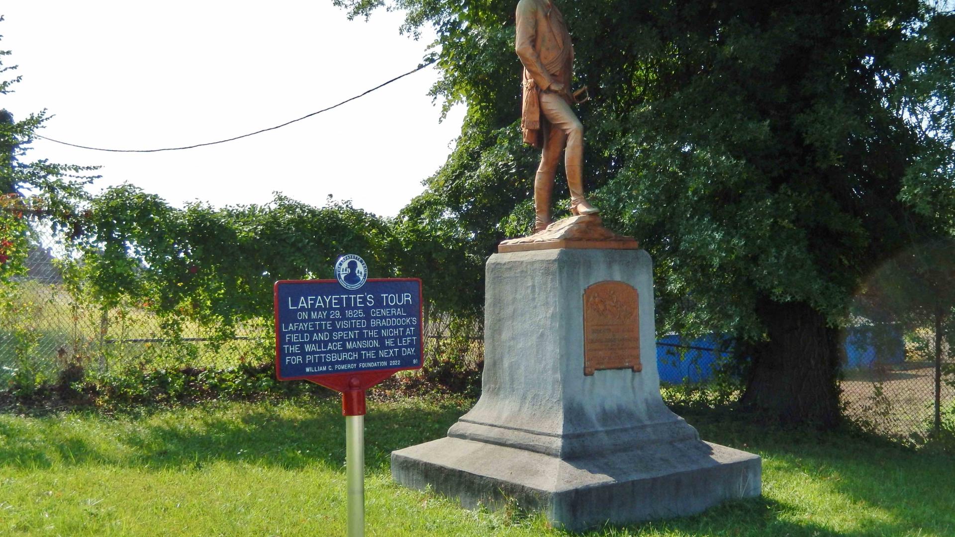 Lafayette and his entourage traveled down the Monongahela River from Elizabethtown (present day Elizabeth) in a ceremonial barge, arriving at Braddock’s Field on Sunday evening, May 29, 1825. He was welcomed at the Wallace Mansion, the home of George Wallace, Esq., where he spent the night. He departed the next morning for Pittsburgh.