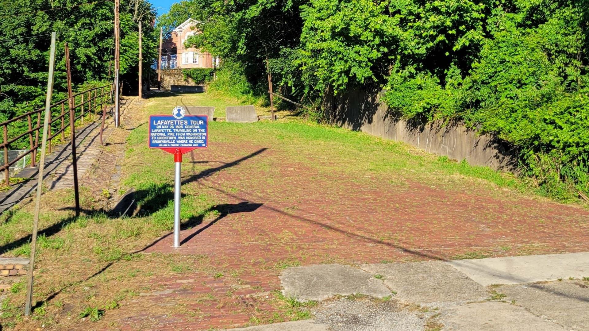 Lafayette was received on the west bank of the Monongahela River in the town of Brownsville on May 26, 1825. Brownsville was an important river and transportation hub at the time. He was greeted by 24 young girls dressed in white, representing the 24 states in the Union. He shook hands with veterans of the War of 1812 and was served a meal at the Brashear Inn. He then departed for Uniontown, traveling by carriage on the National Pike, the first federally funded highway (1811).