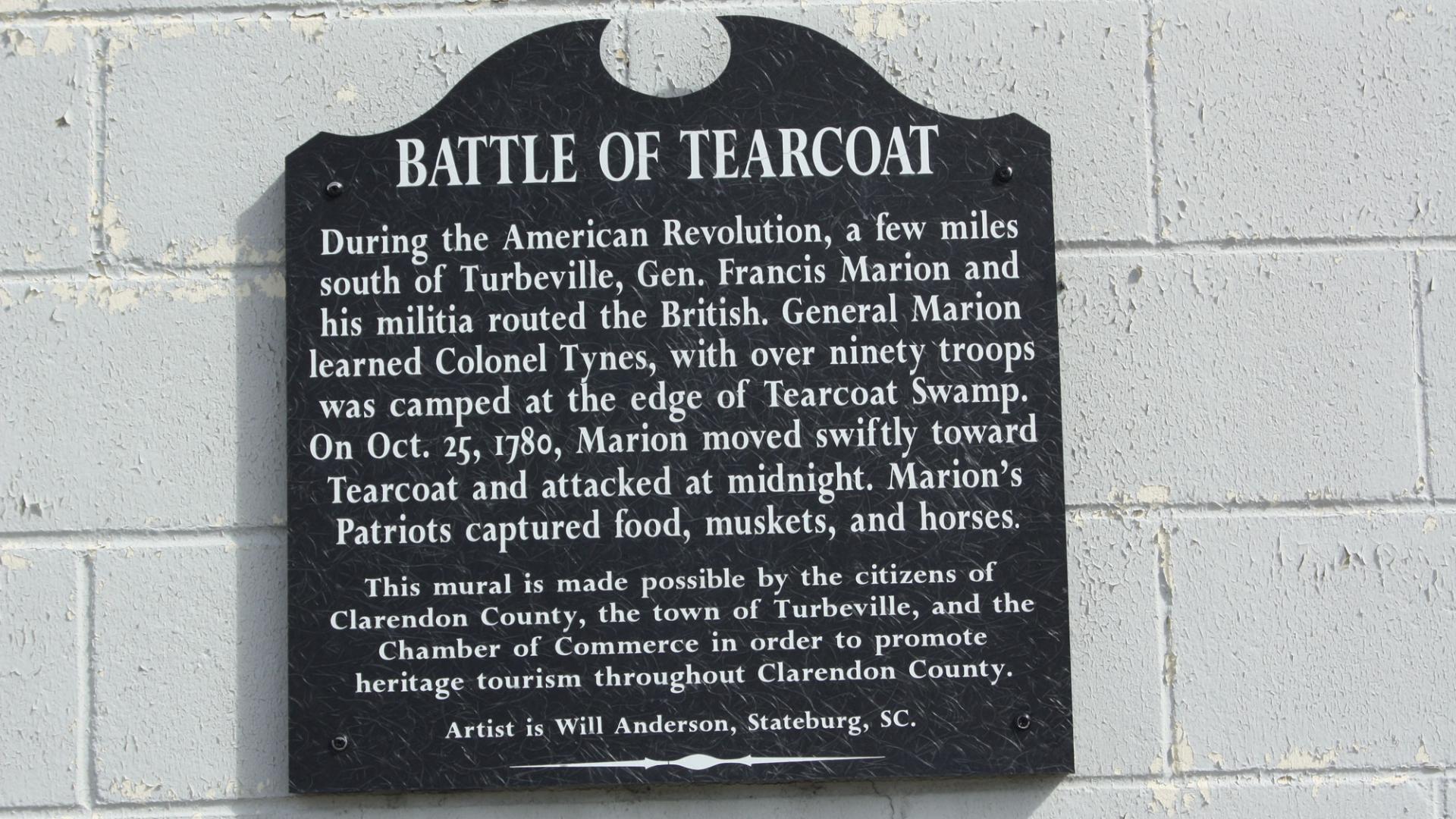 If you are driving a few miles south of the present-day town of Turbeville, you might cross the path Patriot Colonel Francis Marion, “The Swamp Fox,” took to Tearcoat Swamp in October 1780. Marion was on his way to surprise British Lieutenant Colonel Samuel Tynes and his Loyalist militia at their camp there. The British command had pinned their hopes on recruiting Loyalists who would fight — and win — for the Crown in the South. Tynes was ordered to call up Loyalist militia from the Santee region and provide them with arms, ammunition, food, and training. He gathered the spirited but undisciplined troops at Tearcoat Swamp.