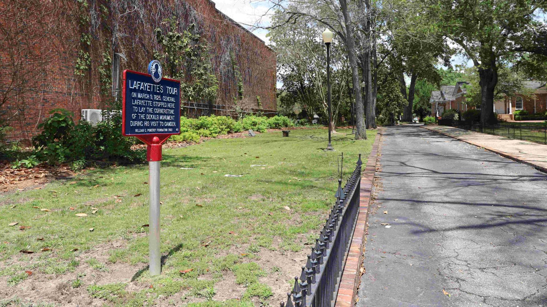 After arriving in Camden, Lafayette was escorted to the Kershaw Masonic Lodge #29 for a banquet and afterward retired to the Camden Hotel. The following morning, he attended a ceremony for the removal and reinterment of the remains of Major General Baron DeKalb. DeKalb was a French military officer who served in the Continental Army and was mortally wounded at the Battle of Camden on August 16, 1780. Lafayette laid the cornerstone of a monument dedicated to his mentor.