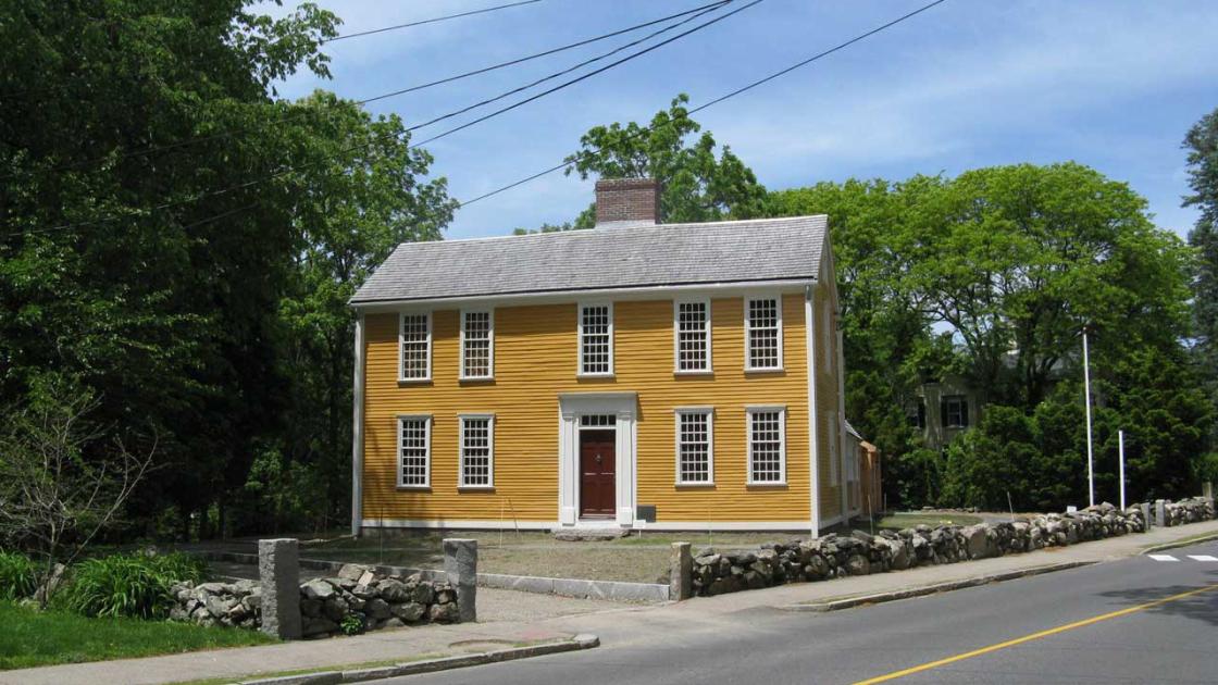 In 1775, this was the home of Jonathan Harrington, a member of the Lexington militia, his wife Ruth, and their son Jonathan. The senior Jonathan Harrington was one of the militiamen assembled on the Lexington Green on the morning of April 19. In the ensuing confrontation with the British troops, he was mortally wounded. According to local tradition, Jonathan Harrington crawled back to the doorstep of his home, where he died in the arms of his wife.
