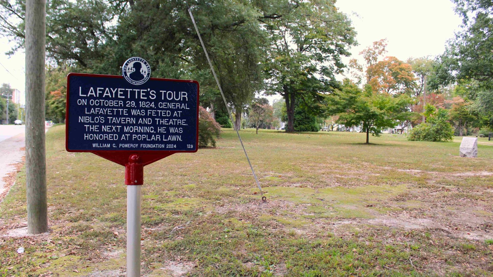 Lafayette arrived in Petersburg on October 29, 1824, where he was honored with a major civic celebration, including a reception at Niblo’s Tavern and Theatre and a public ceremony the following morning at Poplar Lawn, a large public green that served as a parade ground and civic gathering place. The city turned out in force, reflecting Petersburg’s pride in its Revolutionary War connections and its status as a major Virginia town.