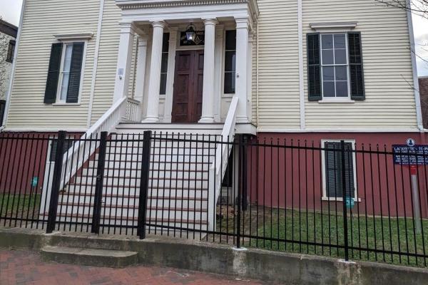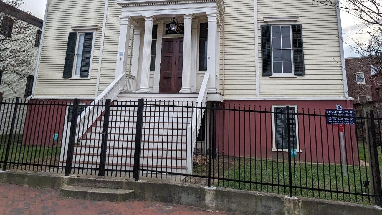 Lafayette arrived in Richmond on October 26, 1824, and proceeded to the Eagle Hotel, where his headquarters were established. On the evening of October 30, a dinner was held attended by Chief Justice John Marshall. Richmond's Masons Hall was built in 1785 and is the actual location from which Lafayette was received and made an honorary member. During his visit to Richmond, he recognized his old associate in the crowd. According to a local newspaper account, Lafayette called out to James Armistead Lafayette and took him into his embrace. Born a slave, James received permission to serve with Lafayette as a spy. For his service, Armistead received his manumission in 1787.