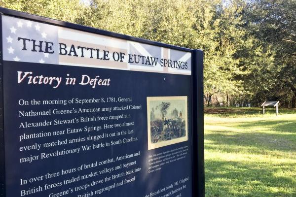 On September 8, 1781, an American force under the command of Nathanael Greene attacked a British force under the command of Alexander Stewart in the Battle of Eutaw Springs. Despite the initial success, Greene eventually retreated from the field. The engagement was one of the final battles in South Carolina.